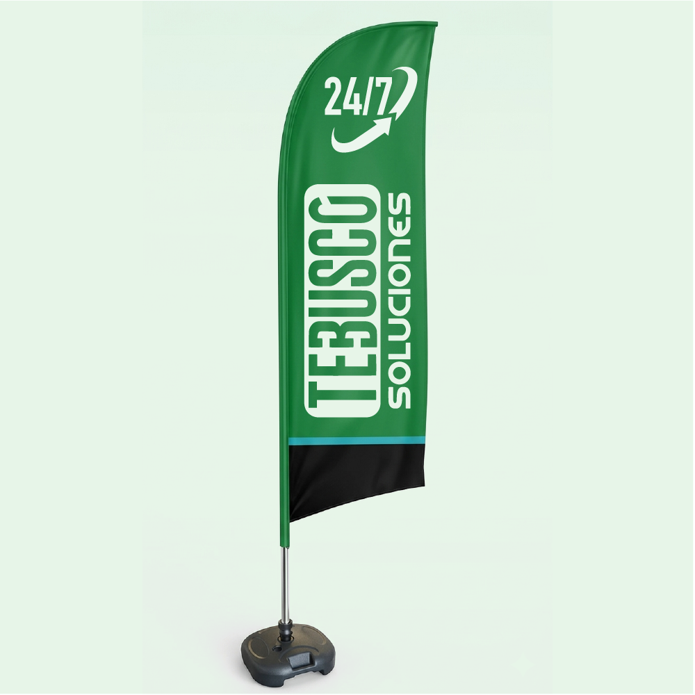 Nuestras banderolas de playa o vela son personalizadas con la gráfica que tu quieras. Las banderas de vela están elaboradas de tal forma para que su transporte sea sencillo y cómodo ya que el mástil se puede plegar. Sin ninguna duda, te ofrecemos la mejor calidad y precio del mercado. · Base de agua para rellenar. Con esta base de plástico es sin duda la mejor opción para exteriores en los que no podemos clavar nada al suelo como las aceras o pavimento.
